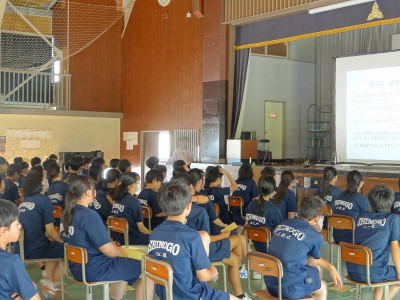 2025年11月19日 15時42分下郷町乳幼児健診担当歯科衛生士の高橋先生と下郷町保健師の栗城先生をお招きし、1年生と3年生を対象に行いました。