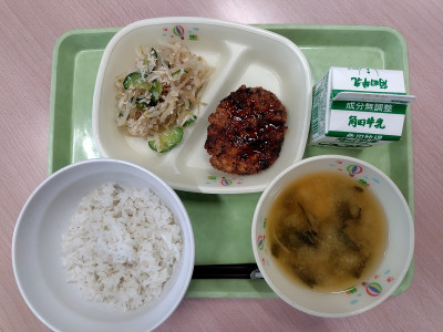 保健室わきの廊下に「朝食フードモデル資料」が展示され、生徒たちに啓発を行いました。