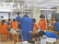 今週が始まりました。一段と寒さが厳しくなってきています。駐輪場脇の銀杏の黄色く色づいた葉が一斉に地面に落ちて、まるで絨毯を敷いたようです。昨年植樹した楓の葉も真っ赤に染まってきました。技術室では3年生が技術科の授業で作品を製作していました。