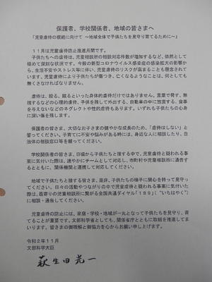 2020年11月10日 18時41分#下郷中学校#児童虐待防止#文科省