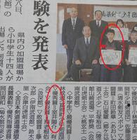 今日の新聞に県剣道道場連盟研修会の記事が載っていました。剣道を通して学んだことなどを発表する審査会が有り、優秀賞に、室井陽介くんが選ばれました。おめでとうございます。頑張ってます!下中生!