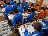 今日は1年生の第2回目の書写教室が行われました。講師は白石光史先生です。1回目の作品は下中祭で掲示しましたが、出来映えが見違えるほど良くなりました。名前をしっかり書けると全体が引き締まりますね。