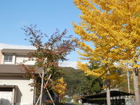 1週間前は下中祭でした。時間のたつのが早く感じます。駐輪場脇の銀杏の葉は黄色く色づき、楓も赤みを増してきました。今日は朝方は雨でしたが、日中は曇りながらも青空が所々に見えています。青空に楓も銀杏も映えています。