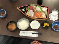 2020年9月17日 12時30分昼食。相馬の たこ八 で刺身定食。刺身が苦手な生徒は海鮮フライ定食。