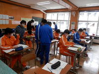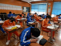 今年もこの季節がやってきました。3年生の進路学習の一環として、下郷町四つ葉のクローバープランの予算を活用して、ベスト学院進学塾から3名の講師を招いて、受験の心構え、基礎・応用コースに別れての講義をいただきました。「夏を制する者は受験を制する」「志望校は自分のいきたい学校」「具体的な目標の設定、期限を区切った計画」「受験校の差は15点ぐらい」等々の普段耳にしない話に、3年生の表情は引き締まり目つきが変わってきました。