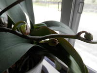 昨年春に胡蝶蘭の花をもらいました。花が終わったのでインターネットで今年花を咲かせるように処理をしてみました。(茎を切っただけですが…)水やりと栄養剤を与え続けていると、ついに花芽がつきました。だんだん大きくなってきています。成長が楽しみで、別の意味で学校に来るのが楽しくなっています。(校長)
