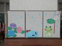 正面玄関の郵便ポストの前の掲示物は、先生方が季節を考慮しながら工夫して掲示してくれます。今回は「梅雨」がテーマです。素晴らしいですね。