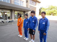 今日は一段と冷え込みが厳しい朝でした。校庭には霜がおりて白くなっていましたし、プールには薄氷が張っていました。そのような中、特設陸上部の生徒たちは、白い息を吐きながら黙々と基礎の動きづくりに取り組んでいました。