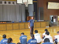 今日から全校朝会が放送朝会になりました。生徒会本部役員が中心となって運営し、週番からの先週の反省と今週の目標の発表などが行われました。また、南会津郡青少年健全育成柔剣道大会で個人戦2位になった稲本和真くんが受賞披露を行いました。主体的な活動を目指した生徒会活動を通して、下郷中学校は益々頑張っています。