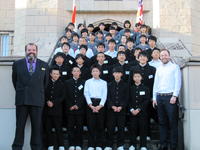 昨日から1泊2日で、ブリティッシュヒルズで、異文化体験、英語研修のための研修を2年生が行ってきました。昨日は風雨で寒い1日でしたが、今日は晴れてすがすがしい空気の中での研修になりました。