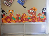 事務室前の掲示板に引き続き、生徒昇降口にハロウィンの飾りが登場しました。こちらは、支援員さんが中心となって、佐藤由梨さんが制作してくれたものです。学校の雰囲気が明るくなりますね。ありがとうございました。(校長)