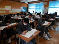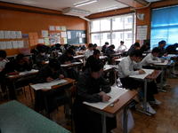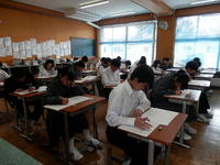 今日は2学期中間テストが全学年で行われています。廊下から教室を見てみると、鉛筆の音が「カタカタ…」消しゴムの音が「ギシギシ…」。呼吸する音も聞こえない程、緊張感と真剣な空気が漂っていました。