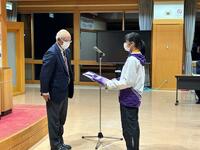 2024年3月11日 15時29分週末の積雪も解けだし、青空が広がり気持ち良い天気となりました。本日、会津・野岩鉄道絵はがき・ポスターコンクールの表彰式が行われました。南会津地方振興局より深谷一夫局長様が来校され、最優秀賞の佐々木優空さんと奨励賞の二宮明花さんに賞状を授与していただきました。おめでとうございます!