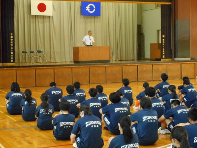 下郷中学校の生徒たちの活躍が光り輝く全校朝会となりました。