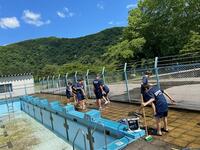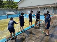 本校のプールは50M7コースの本格的なプールなので、掃除や管理が大変です。また、夏休み中は町民プールとしても活用されるので、多くの人が訪れます。みんなの力できれいになったプールで、水泳の授業が始まります!たくさん泳いでほしいと思います。