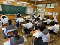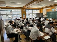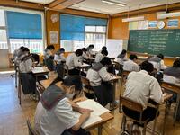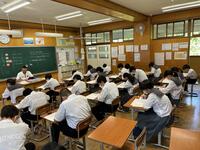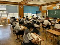 今朝はすっきり晴れ渡り、気持ちのいい青空が広がっています。今日から明日にかけて期末テストとなります。初日の今日は、各学年共に国語・理科・技術家庭・英語のテスト問題に集中して取り組んでいました。明日は、保体・数学・社会となります。限られた時間を有効に活用し、ベストを尽くして欲しいと思います。
