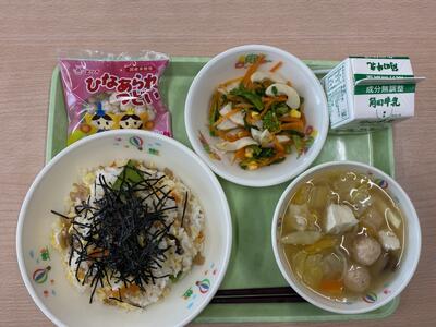 2022年3月16日 13時05分3年生が卒業し、何となく寂しさを感じますが、1・2年生は元気に生活しています。今日の給食は、コッペパン、リンゴジャム、キノコソースオムレツ、コーンサラダ、野菜スープ、牛乳でした。おいしそうに食べていました!