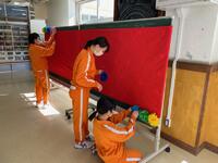 2022年3月10日 15時09分いよいよ明日は、本校の第50回卒業証書授与式です。1・2年生と職員で力を合わせて会場づくりをしました。