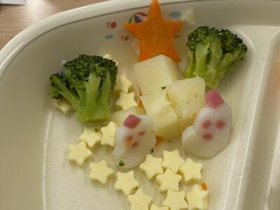 サラダの具が、星や雪だるまの形をしていて、クリスマスの気分を味わうことができました。