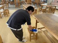 2022年1月13日 16時28分新型コロナウイルス感染症の感染者も日に日に増加しています。学校では今まで同様、マスク着用・手指消毒・校舎内の消毒等を行っています。校舎内は細部にわたり、スクールサポートスタッフの渡部さんに丁寧に消毒していただいております。