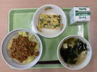 2022年1月14日 12時25分3学期も学校給食をおいしくいただいています。今日は、韓国料理のチヂミを取り入れた献立でした。チヂミのモチモチした食感がくせになるようなおいしさでした。ピリ辛丼は、辛いものが苦手な人でもおいしく食べられる丁度よい味でした。