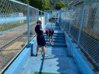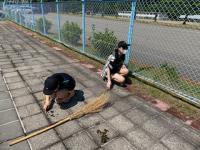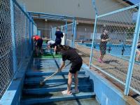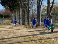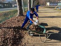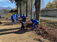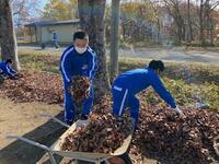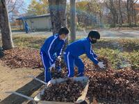 2021年11月19日 17時11分落葉樹は落ち葉の処理が大変です。本日の昼休みに野球部員が、校庭わきの落ち葉をかき集め、一輪車に積んで運んでくれました。この素晴らしいフットワークとチームワークは、今後の試合等でも生かされていくことでしょう!
