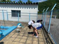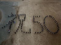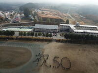 2021年11月19日 12時36分下郷中学校統合50周年を記念して、職員・生徒で、校庭に「祝 50」という文字を作り記念撮影を行いました。やや、朝霧はかかっていましたが、無事撮影することができました。露崎PTA会長様が、ドローンで上空より様々な角度から撮影してくれました。