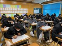 2021年11月17日 09時36分本日から期末テストが始まりまりました。各学年とも真剣な態度でテストに臨んでいました。テスト期間に限らず、普段から予習・復習をコツコツと行うことが大切です。テスト期間は明日まで続きますが、最後まで頑張って欲しいと思います!