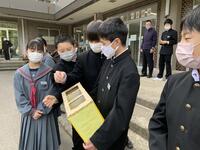 2021年10月20日 14時40分生徒会本部役員が全校生へ呼びかけた「赤い羽根共同募金」で集まった現金を、生徒会長の松田結翔君が代表で町社会福祉協議会へお渡ししました。各支援等で役立てていただければ幸いです。ご協力ありがとうございました。