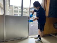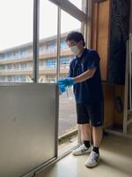 2021年9月3日 12時59分9月より本校のスクールサポートスタッフとして、渡部敢太さんに勤務いただいています。生徒・職員が安心安全に過ごせるよう、主に校内の消毒作業を隅々まで丁寧にやっていただいています。