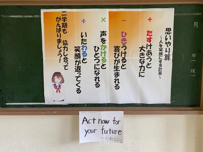 二学期も、本校教育目標達成の合言葉である「笑顔・挨拶・思いやり・清掃」を大切にしていきたいと思います。