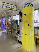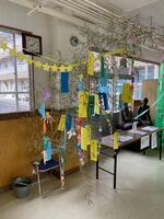 2021年7月1日 12時42分本校の生徒玄関付近に七夕の飾りが作られました。七夕は、織姫さまと彦星さまが天の川を渡って、1年に1度だけ会える7月7日の夜のこと。生徒や職員が短冊に願い事を書いて、笹竹等に飾り付けました。